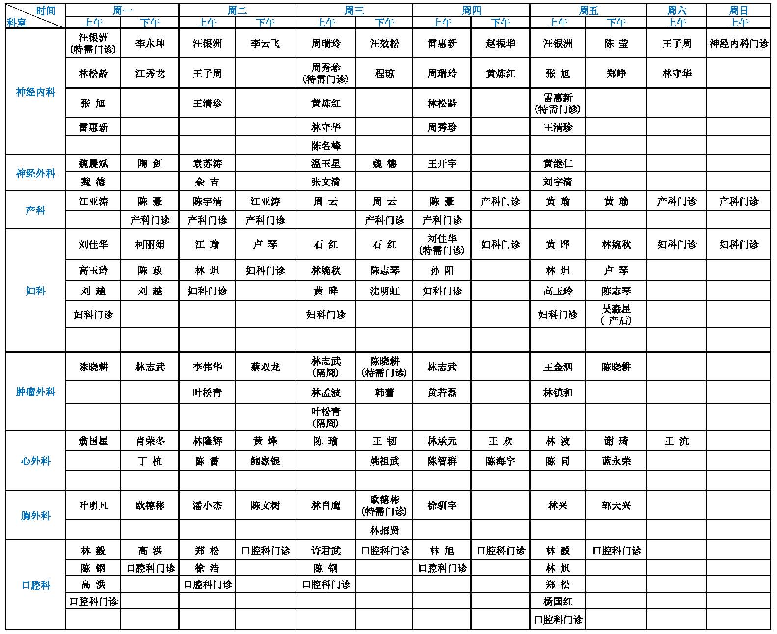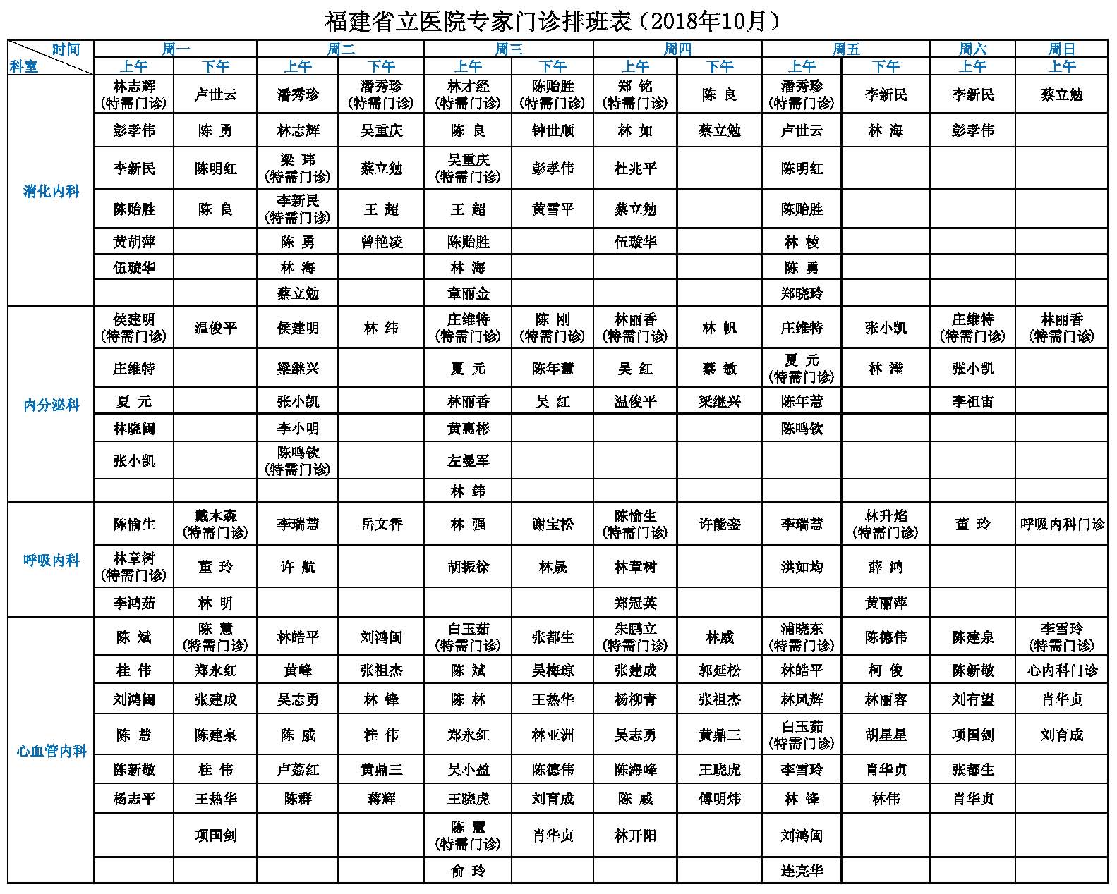 【收藏】福建省立医院、省立金山医院10月专家门诊一览表