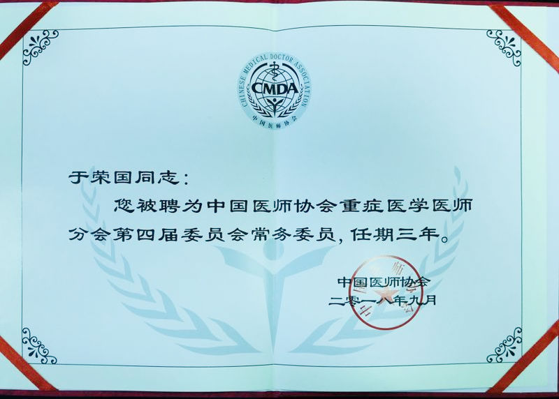 【省立动态】福建省立医院于荣国主任医师当选中国医师协会重症医学医师分会常务委员