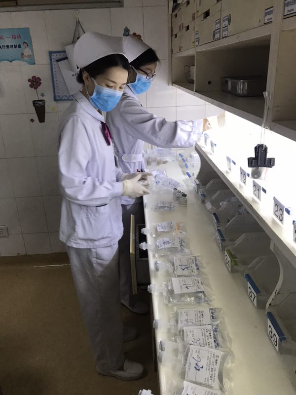 ▲急诊输液厅护士们逐一交接查看输液及留观患者,每0.5-1小时巡视一次。