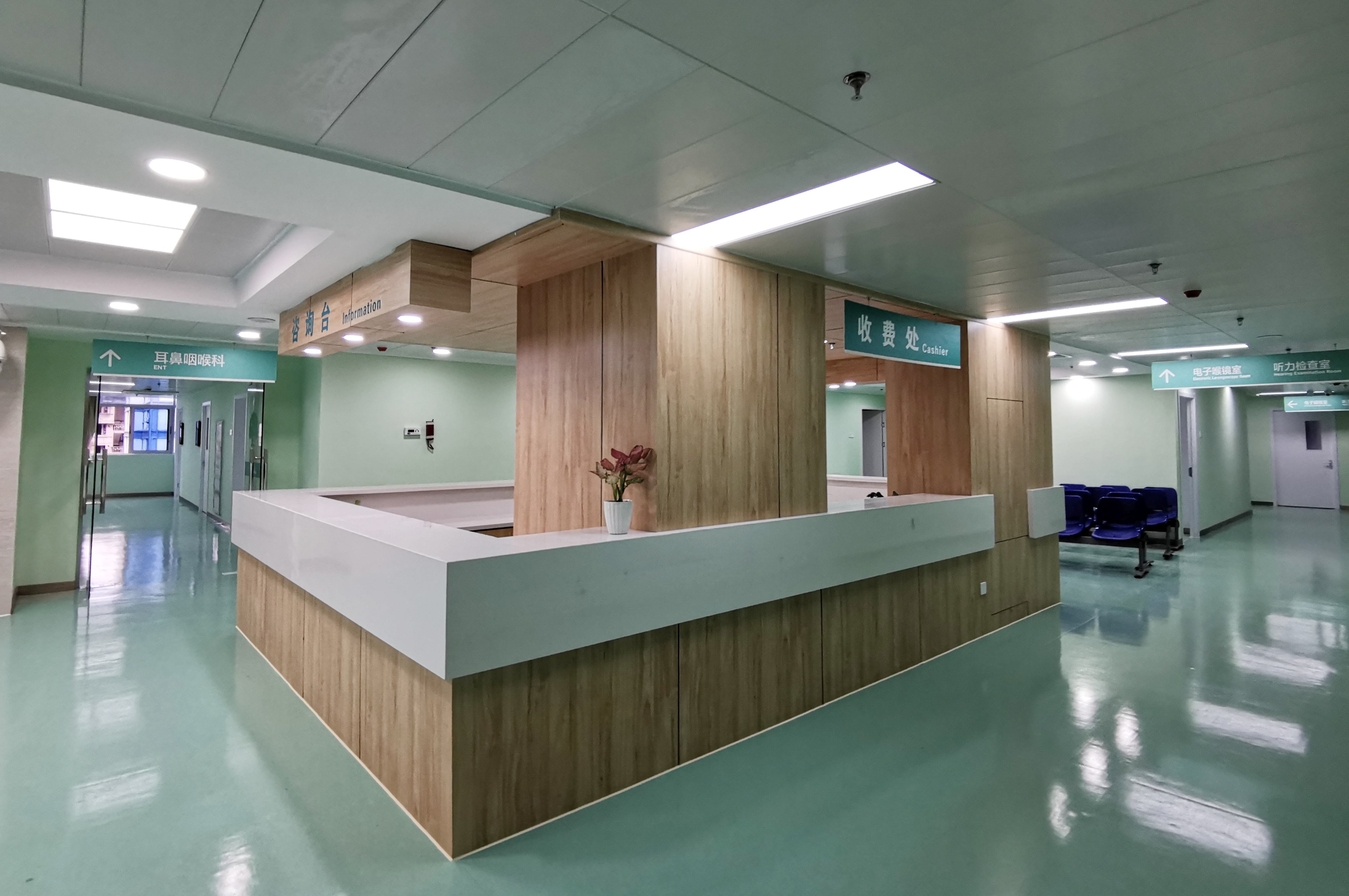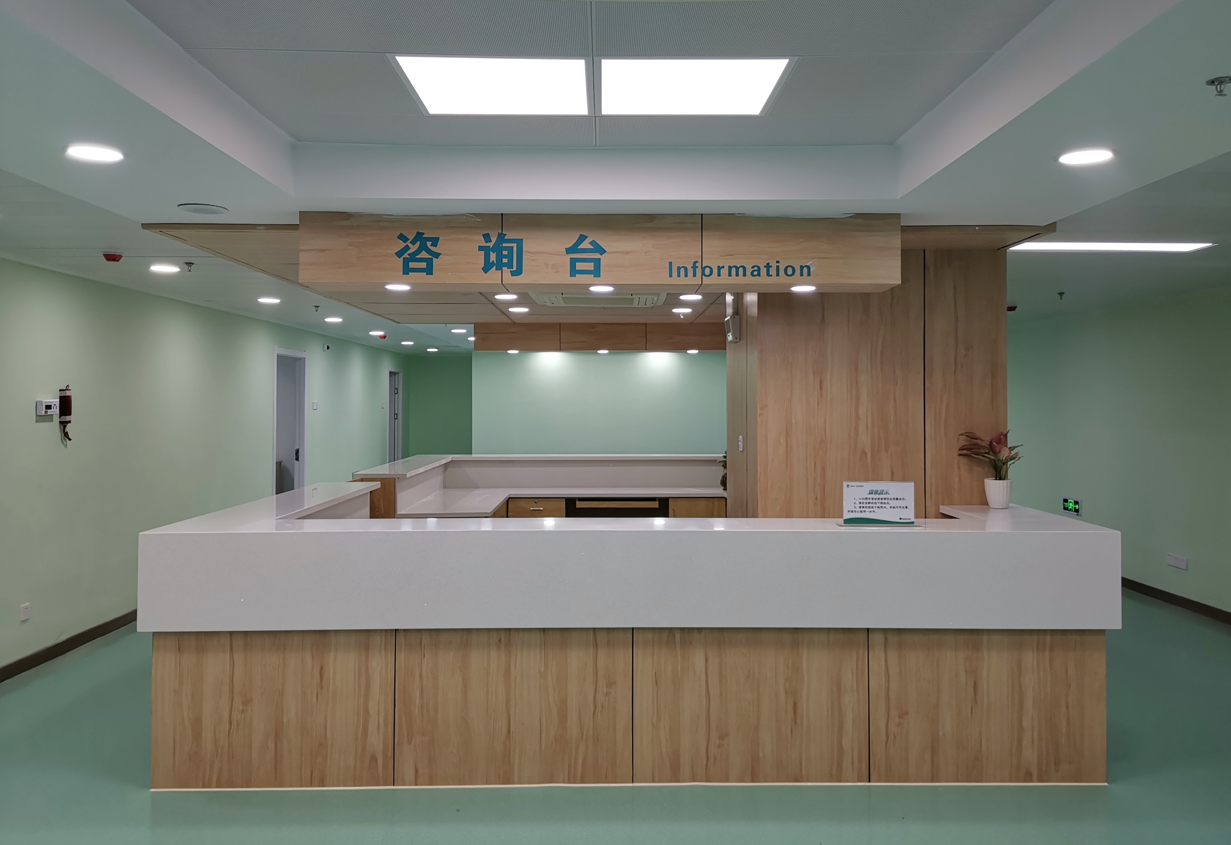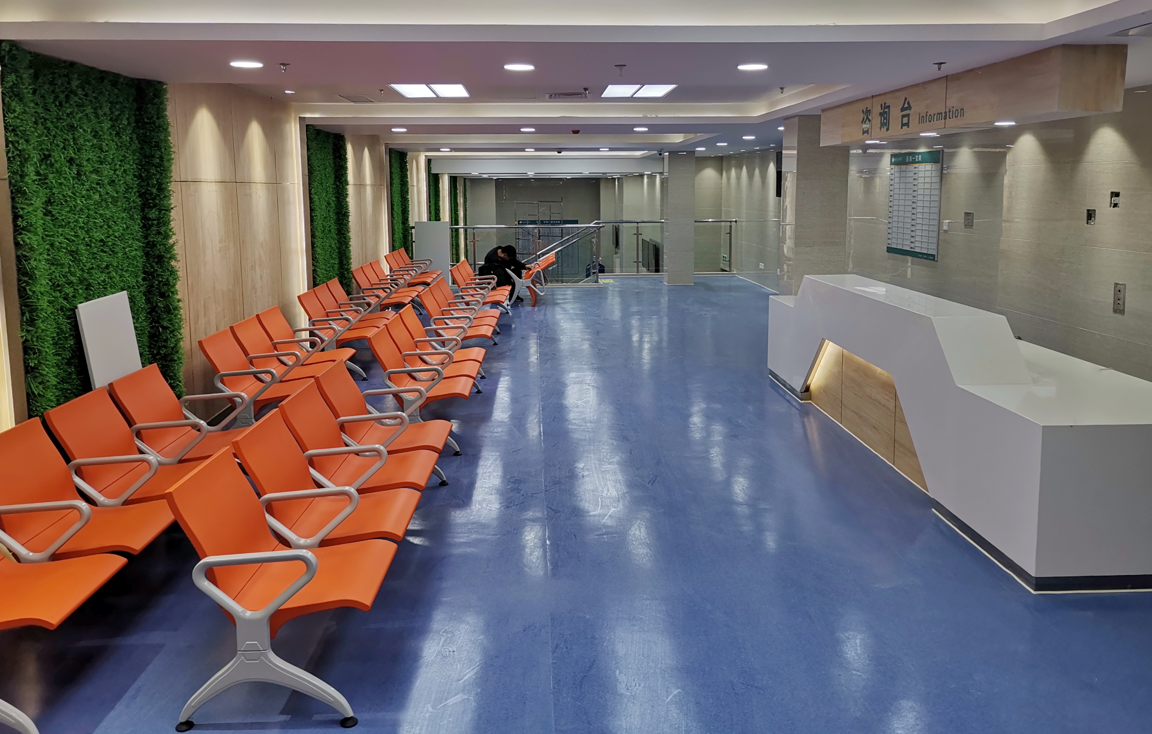 在设计中注重营造色彩丰富的就诊环境,充分考虑不同患者群体对色彩的适应和不同色彩对诊区的识别功能。2号楼的妇产科、儿科、内科、外科、五官科等科室候诊区根据病种不同分别采用粉、蓝、绿墙面装饰,舒缓您的心情。
