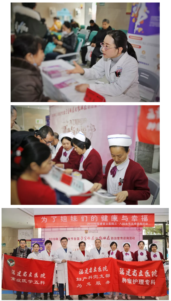 3月8日上午,福建省立医院妇产科联合肿瘤外科、基本外科开展“为了姐妹们的健康与幸福”女性乳腺癌、子宫颈癌防治义诊咨询活动。前来咨询的女性朋友络绎不绝,专家们热心细致为他们答疑解惑,并宣教两癌筛查的重要性。妇产科孙阳主任医师、高玉玲主任医师、江瑜副主任医师,肿瘤外科林志武副主任医师,基本外科邱丽贞副主任医师等参与义诊。