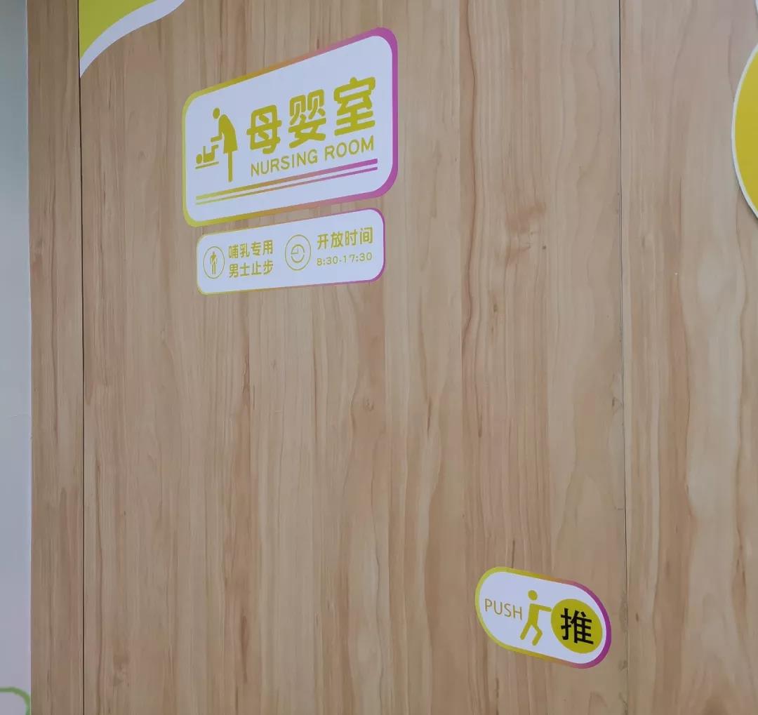 母婴室的大门没有门把手,只是贴了“推”的提示牌,这个看似偷懒的设计,背后的真相却是充分考虑到宝妈抱着孩子,旋动门把手多有不便,这时候只需用身体或者手臂,轻轻一推就可以进入。