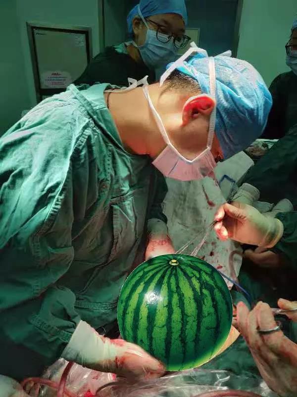 这颗“肥肉样”的肿瘤,长25厘米,宽20厘米,高15厘米,重达7斤多,就像一个大西瓜。