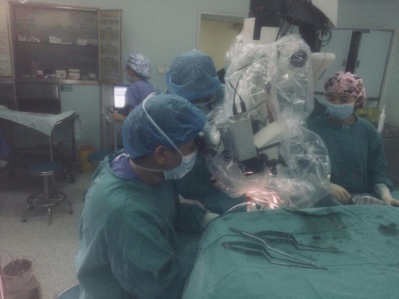 为确保手术万无一失,黄绍崧和同事做了缜密的术前准备和严谨的术前讨论,最终,黄绍崧为姜女士实施手术,患者取侧俯卧位,采用枕下乙状窦后入路,常规开颅后行硬脑膜切开,置入显微镜,脑压板撑开小脑,暴露瘤体,错综复杂的神经和解剖结构犹如一个迷宫,术者操作稍不留神就可能损伤神经、血管,黄绍崧和同事们小心细致地分块切除肿瘤,经过近4个小时的精心手术,术中出血100ml,肿瘤被完整切除,面神经保护完整,大家都松了口气,姜女士更是放下了心中的大石,不再担心自己会“歪嘴斜脸”了。