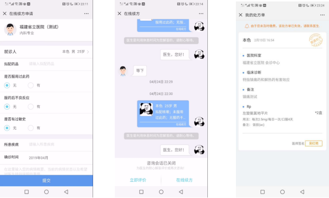 完善续方单问题详情后点击提交发送续方单给医生,医生根据续方单明细进行开方,医生开方经过医院药师审核后,可收到处方单,根据处方单到院取药。