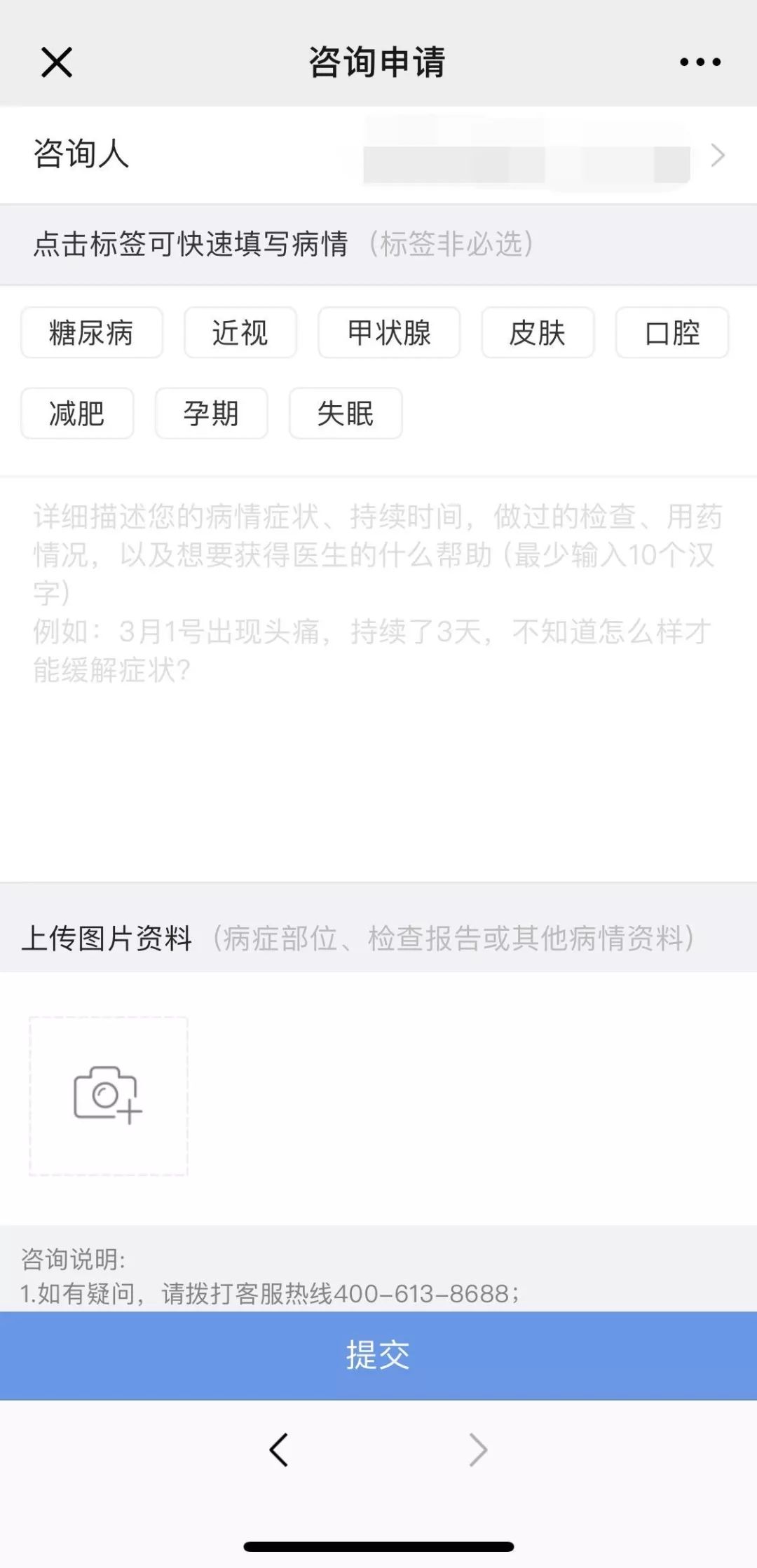 根据自身情况叙述病情并添加图片,提交后等待医生回复即可