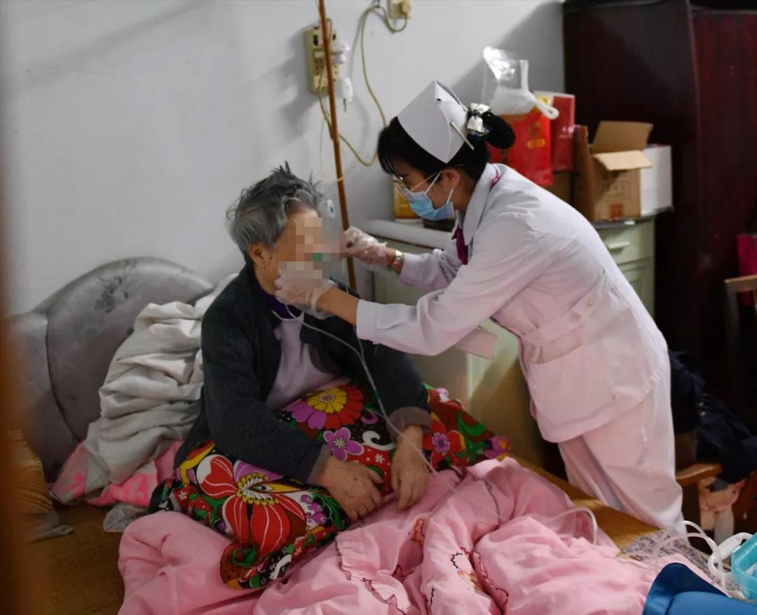 ▲一到患者家中,林丽娟迅速帮患者吸氧、测血压