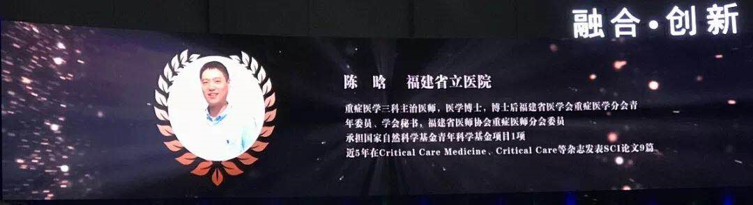 5月24日,中华医学会第13次全国重症医学大会在珠海召开。大会开幕式评选了5位年度重症医学杰出贡献专家和20位年度重症医学青年科学家。福建省立医院重症医学三科陈晗主治医师荣获“2019年度重症医学青年科学家”称号。