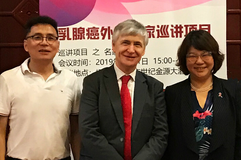 近日,我院肿瘤外科顺利承办“大师中国行”乳腺诊治系列巡讲(福州站)。大会特邀国际乳腺界顶级专家、英国诺丁汉大学外科学教授、英国德比皇家医院外科顾问、英国乳腺外科学会委员、早期乳腺癌临床试验协作组(EBCTCG)执行委员Prof.John Robertson,上海交通大学附属瑞金医院乳腺外科朱丽教授出席并授课。我院游振辉副院长、陈晓耕主任医师、叶松青主任医师及省内各地乳腺领域专家出席会议。