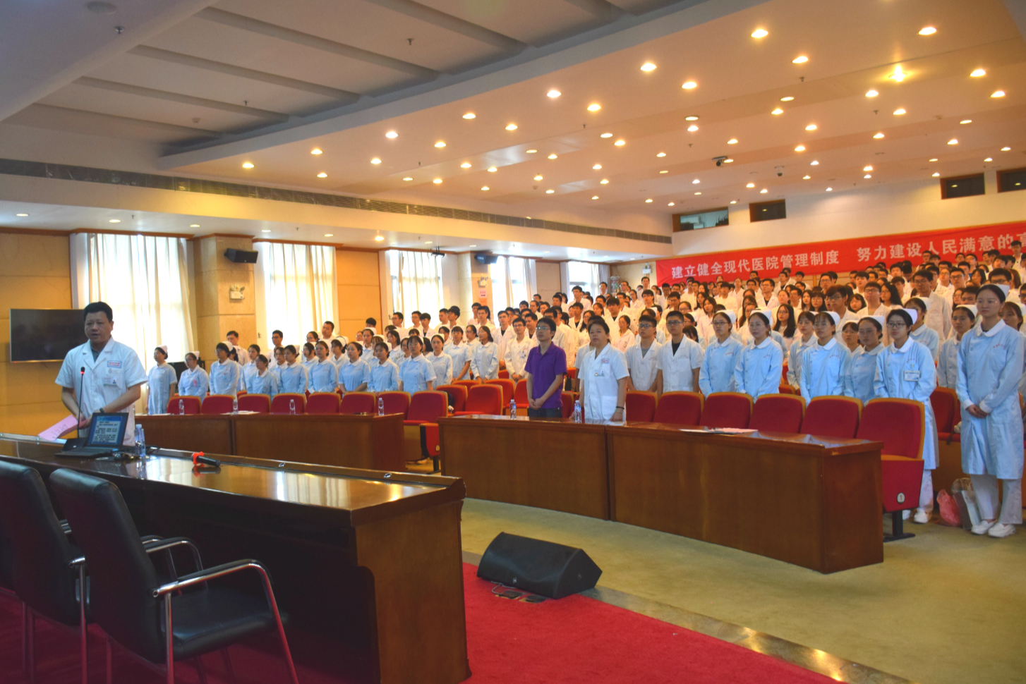 省急救中心副主任郑晓春带领实习生们重温医学生誓言,时刻维护医术的圣洁和荣誉,不辞艰辛、救死扶伤,在实习中能够学到真实有用的知识,成为一名合格医者。