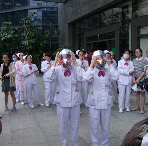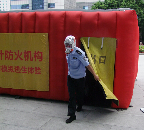 开展帐篷模拟火灾逃生演练,通过消防逃生帐篷真实模拟火灾现场,检验医护人员应对火灾事件的应急处理能力,提升院内义务消防队扑救初期火灾处理水平。
