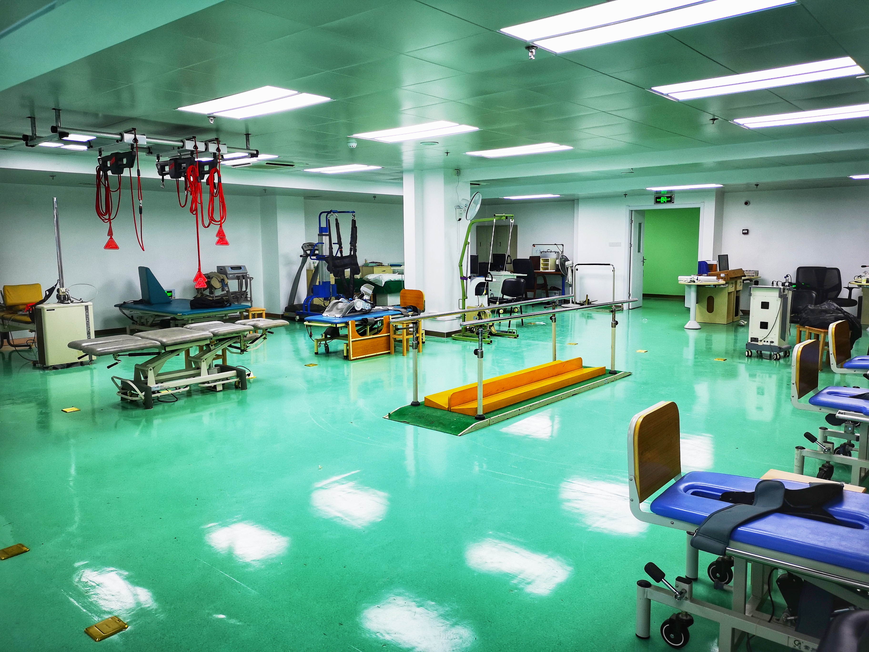 打通相邻旧治疗室,使新的康复治疗室使用面积较前扩大约3倍,实现更规范的康复集中治疗分区,如物理治疗区、运动治疗区、手功能训练区、言语治疗区等。宽敞明亮的康复治疗环境使患者就医更加舒适。