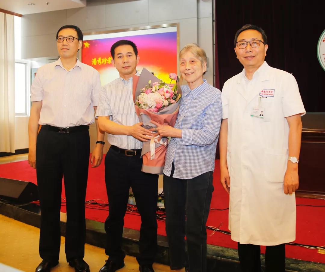 潘秀珍教授是国内著名的消化病、消化内镜专家,福建省胃肠病研究所、福建省消化内镜中心创始人、福建省立医院名誉院长。会上播放了潘秀珍教授从医执教七十周年纪念视频向老专家致敬,潘秀珍教授也上台致辞,分享从医执教七十周年的真情实感,并给予后辈们谆谆教诲和亲切关怀,希望年轻一代医务工作者能坚持医教研全面发展,以守护人民群众的健康为己任。