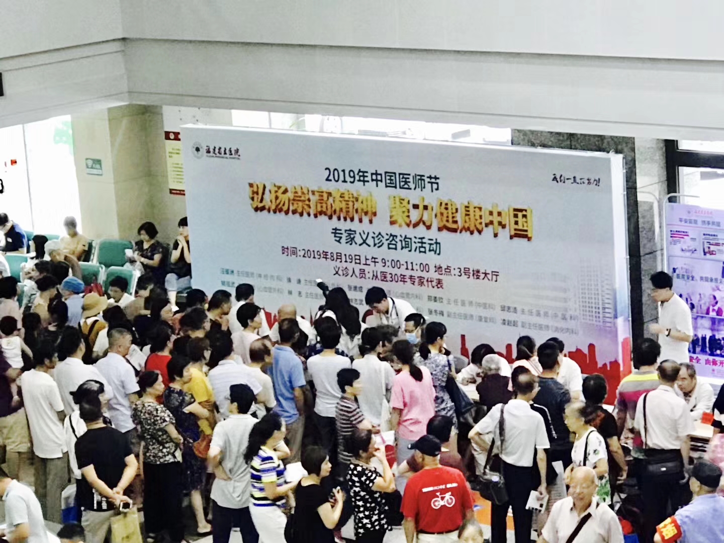 8月19日上午,福建省立医院组织从医三十周年优秀医务工作者代表开展“弘扬崇高精神 聚力健康中国”主题义诊,为群众进行免费诊疗、医学咨询及卫生健康宣教,以公益义诊的方式迎接自己的节日。