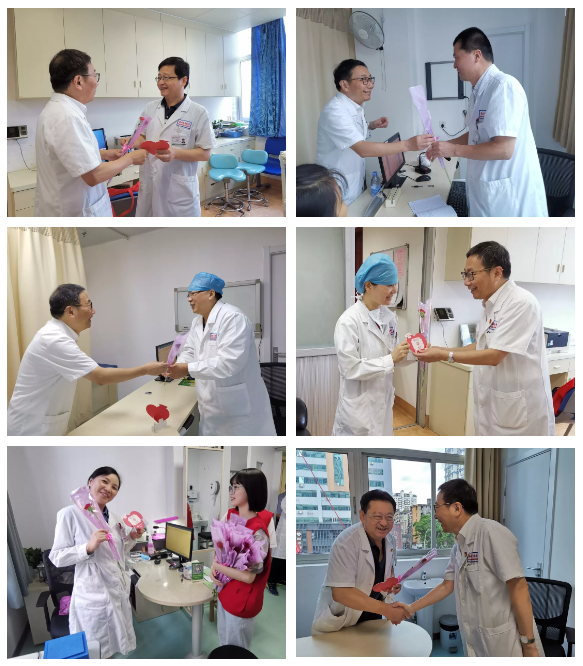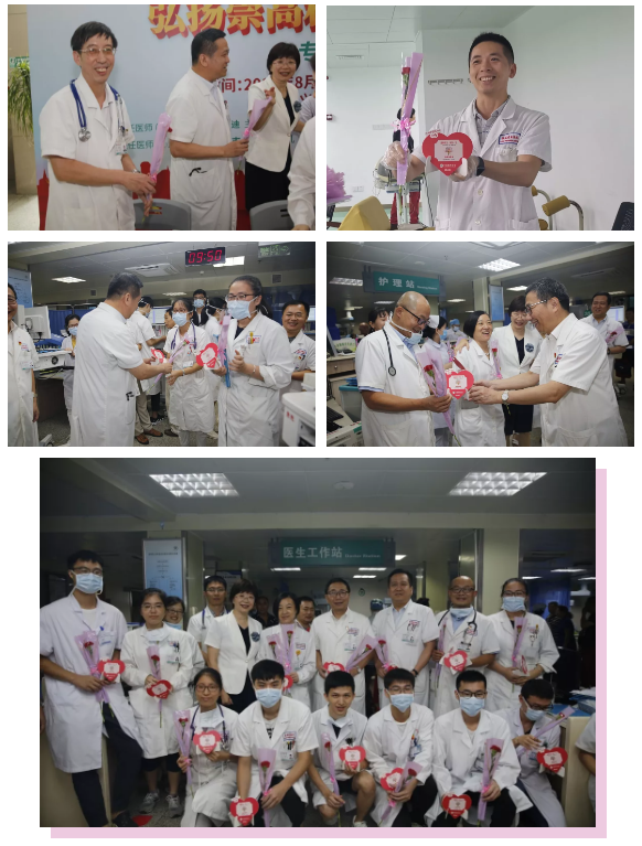 8月19日上午,医院参与了由中国医师协会联合各地方医师协会共同开展“温暖医生,伴你一生”主题送花活动,为临床一线医生代表送上鲜花和节日祝福卡。党委书记、院长朱鹏立与省医师协会副会长、我院翁国星教授作为代表为坚守岗位的医师们献花,送去节日的祝福。