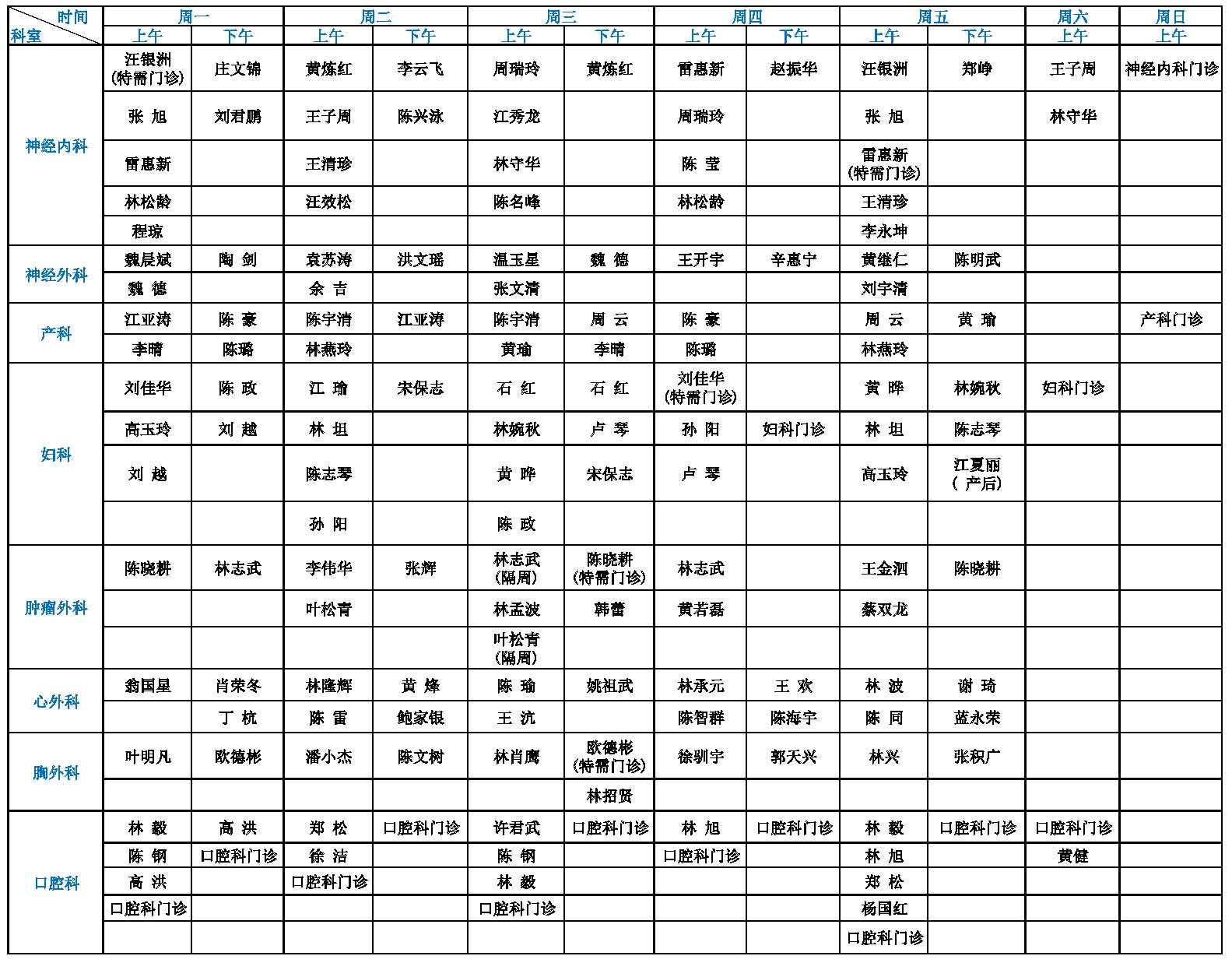 福建省立医院专家门诊一览表