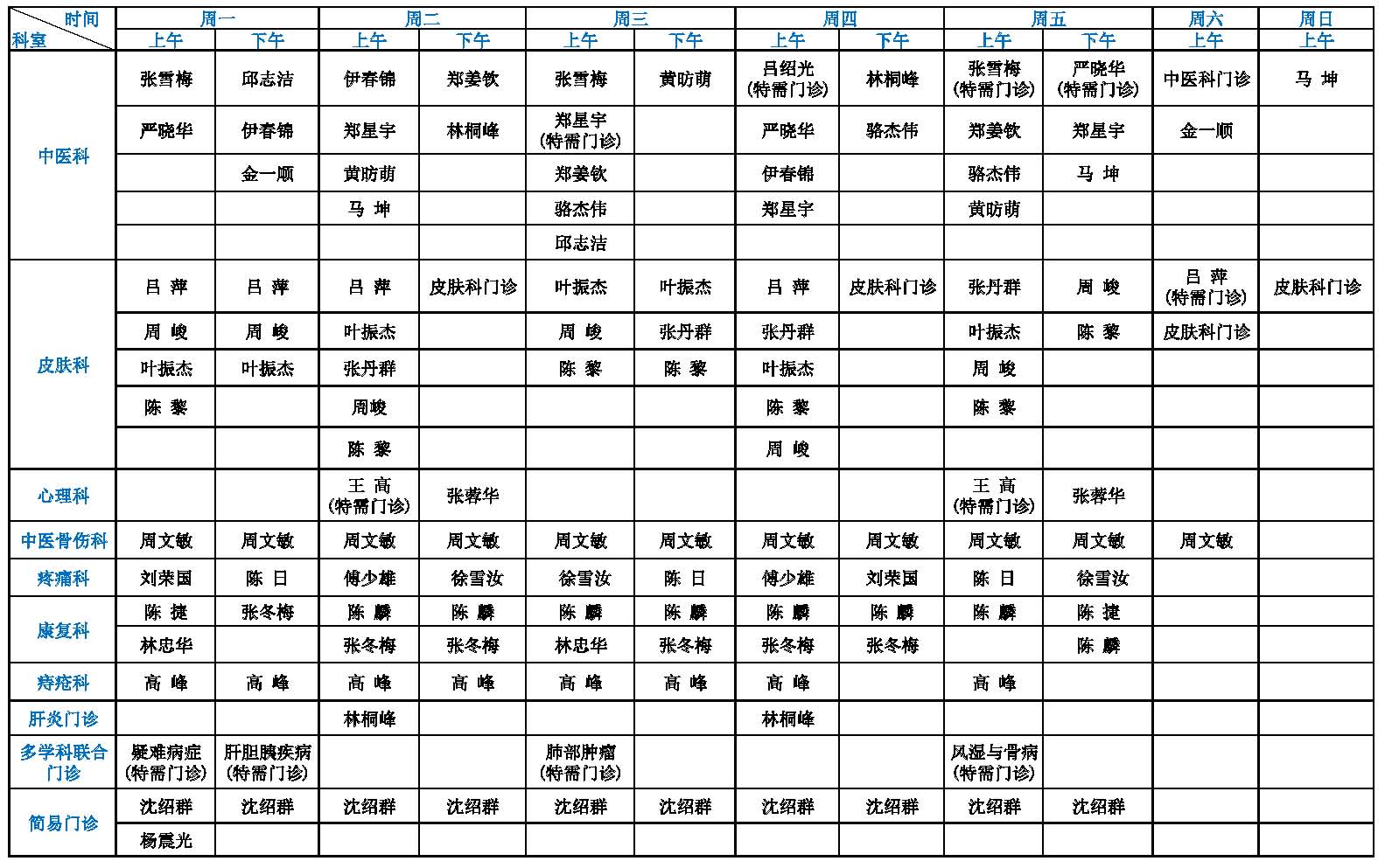【温馨提示】点击可查看大图!(注:专家门诊如有临时变动,以院方当日公布为准!)
