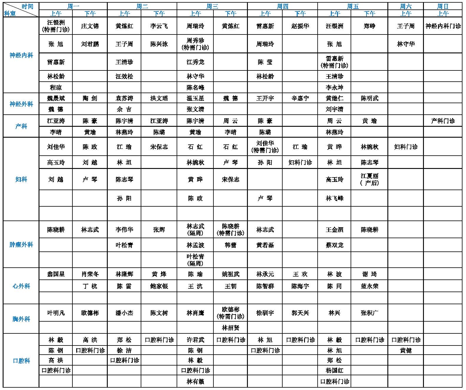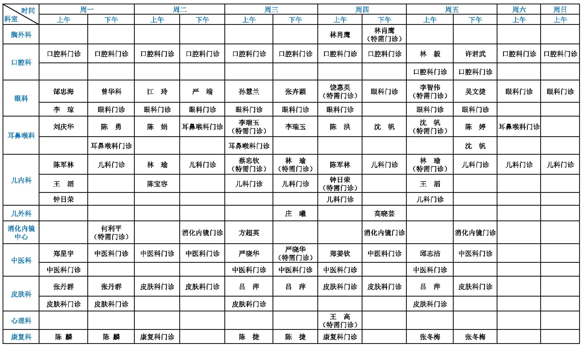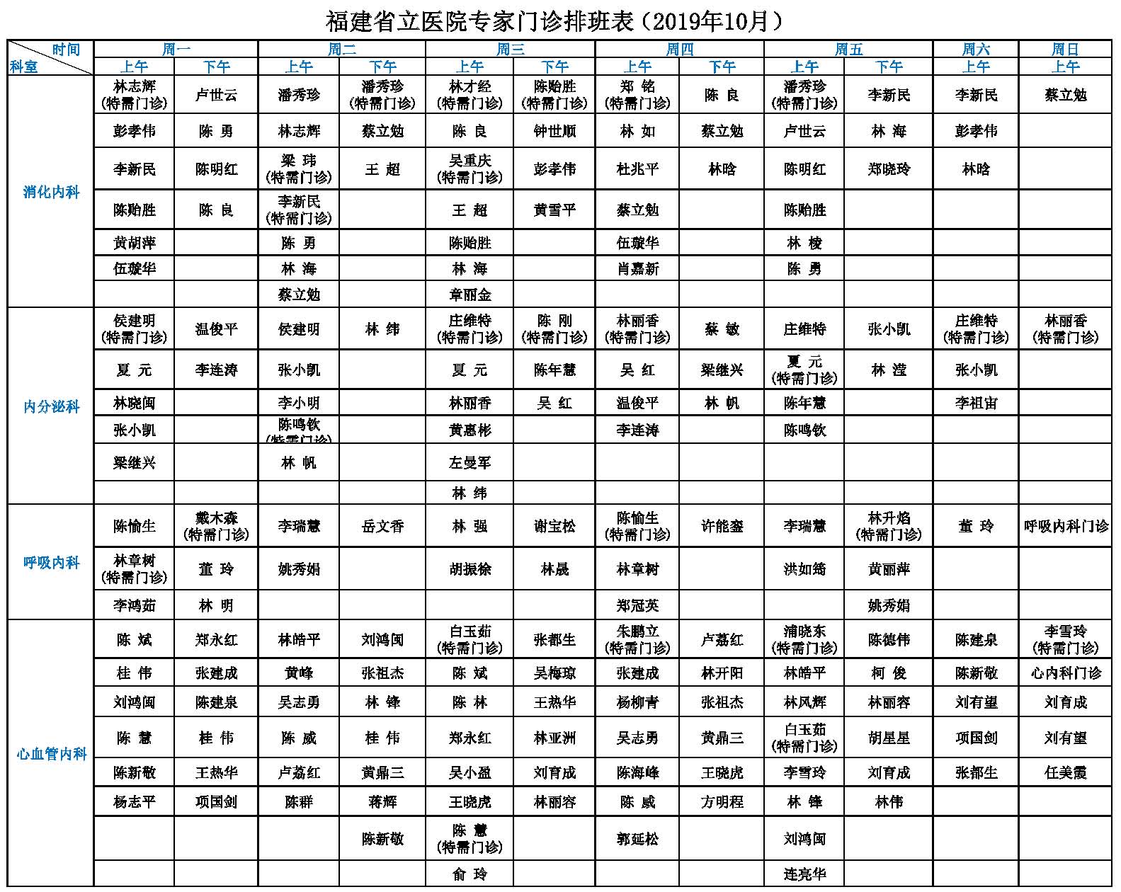 福建省立医院专家门诊一览表