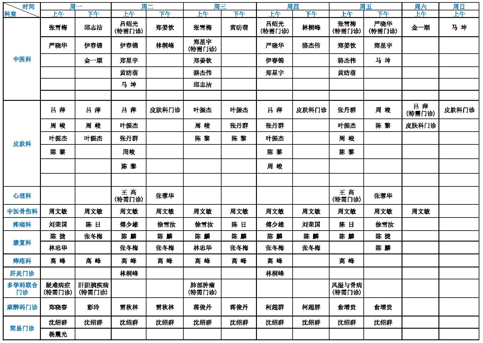 【温馨提示】点击可查看大图!(注:专家门诊如有临时变动,以院方当日公布为准!)