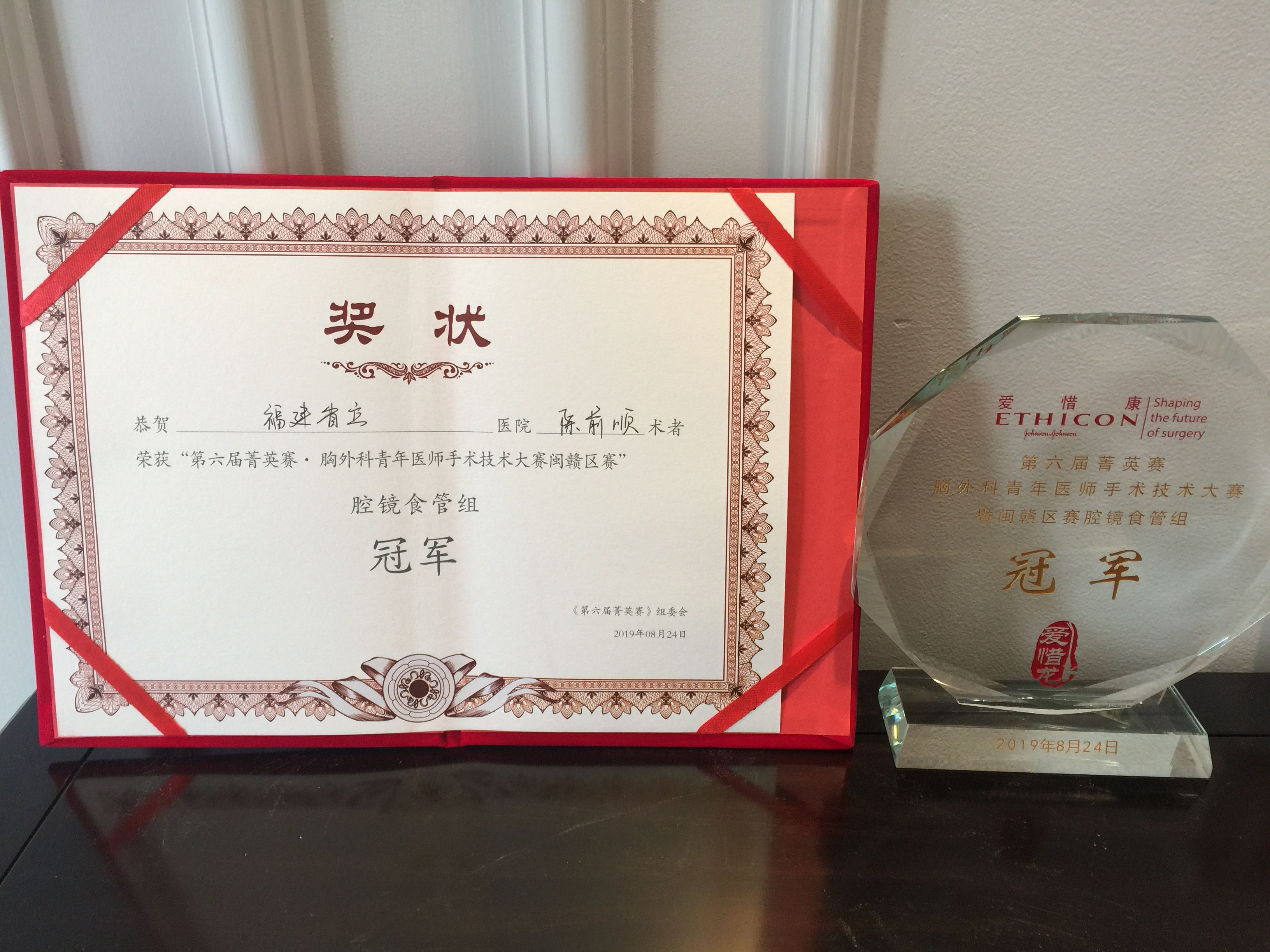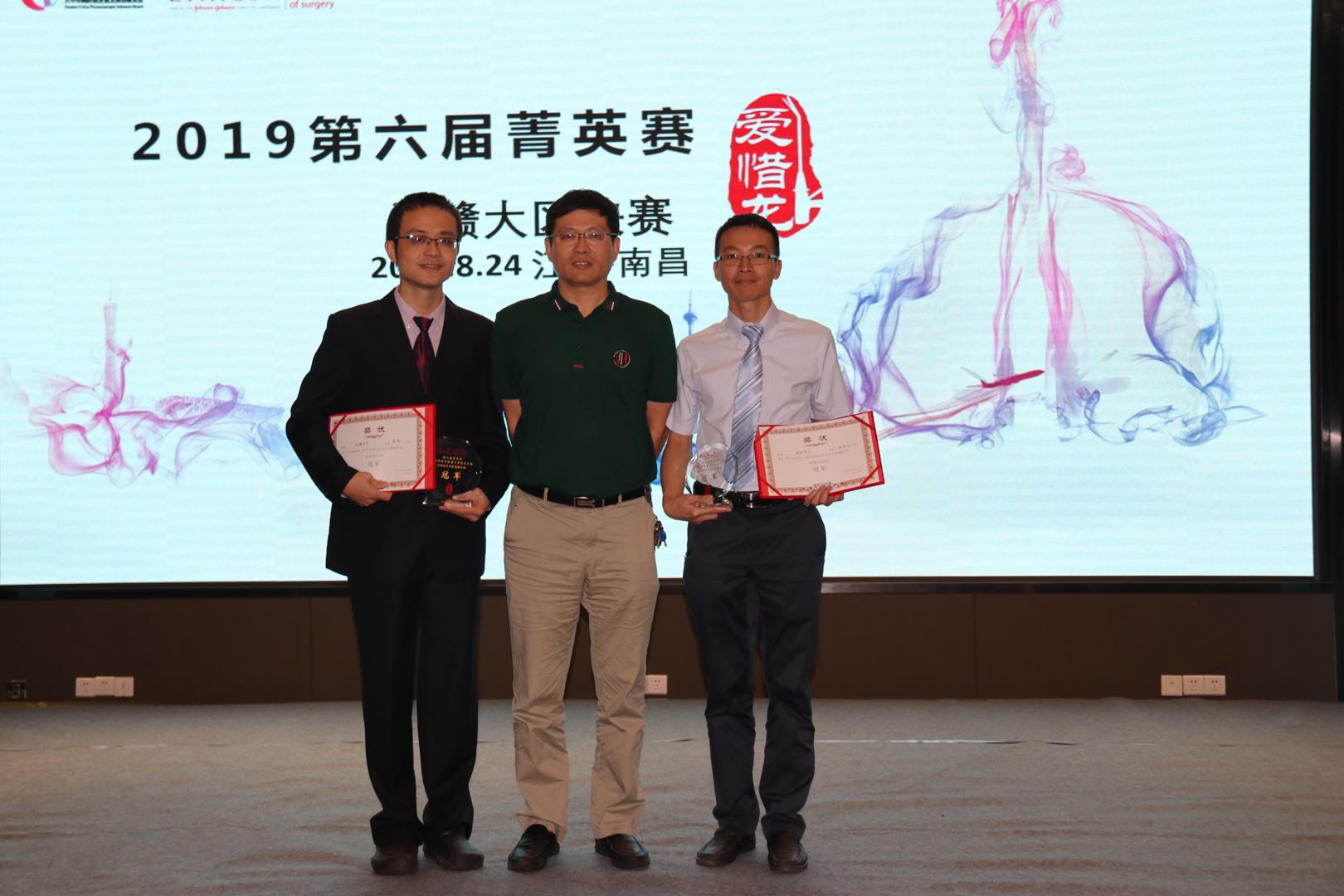 近日,第六届菁英杯胸外科青年医师手术技术大赛(闽赣省区赛)在南昌顺利落幕,我院胸外科黄郴主治医师、陈前顺主治医师携手亮相,分获腔镜肺叶组、腔镜食管组冠军。