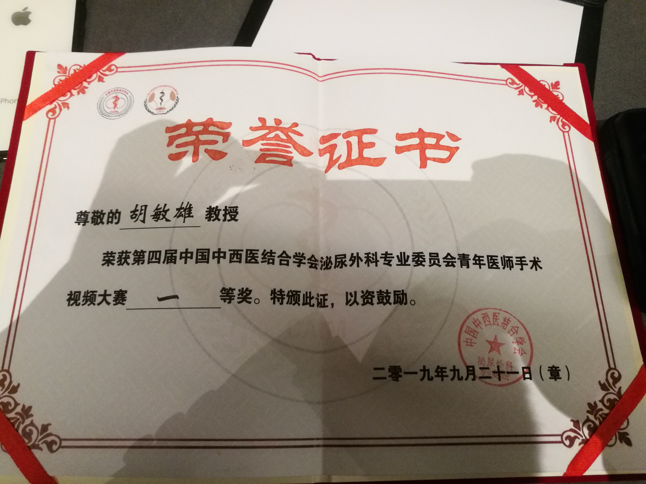 9月20日,第四届中国中西医结合学会泌尿外科专业委员会青年医师手术视频大赛在天津顺利落幕。我院泌尿外科胡敏雄主治医师脱颖而出,摘得桂冠。