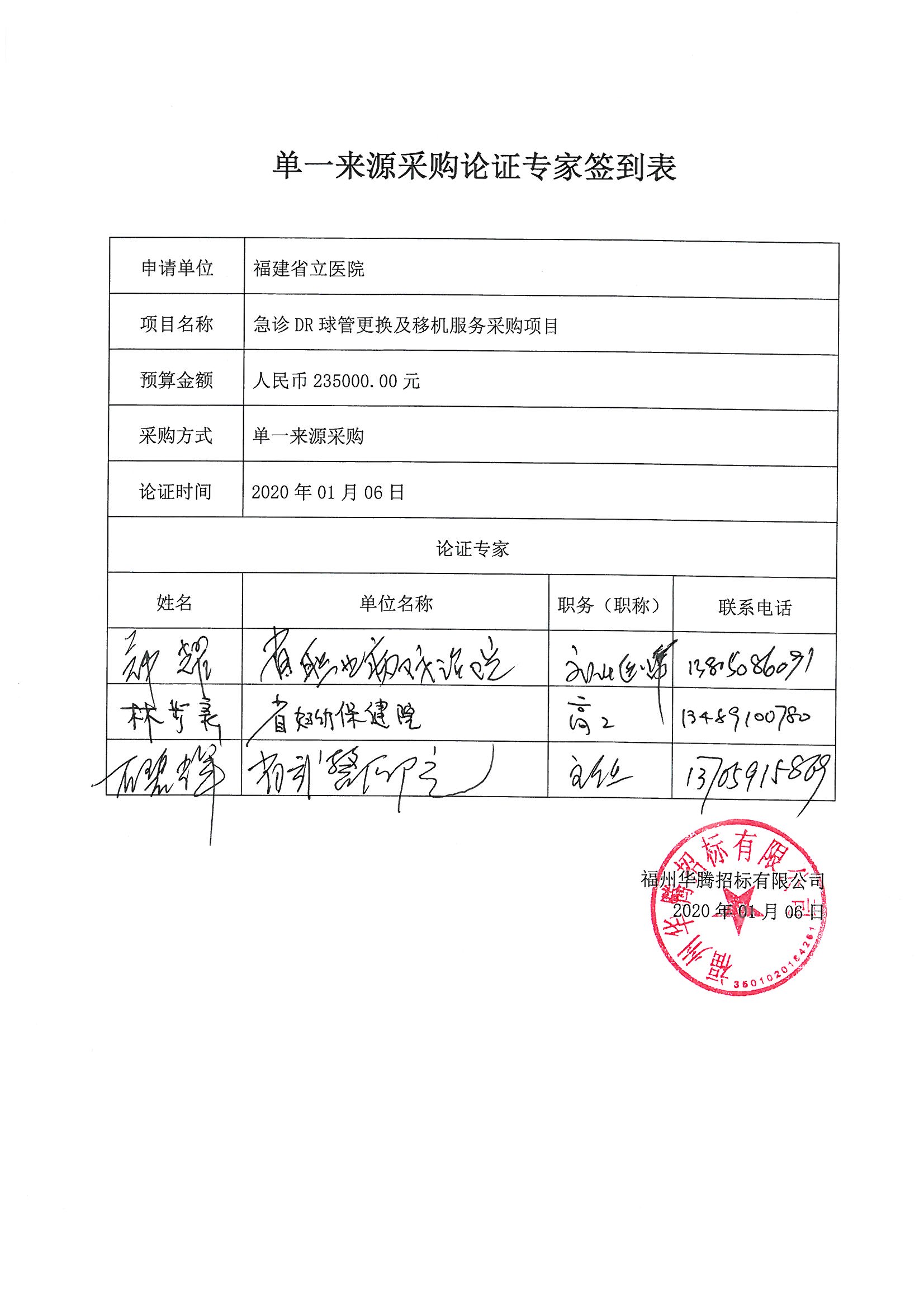 福建省立医院对急诊DR球管更换及移机服务采购项目拟采用单一来源采购方式进行采购,现公示如下: