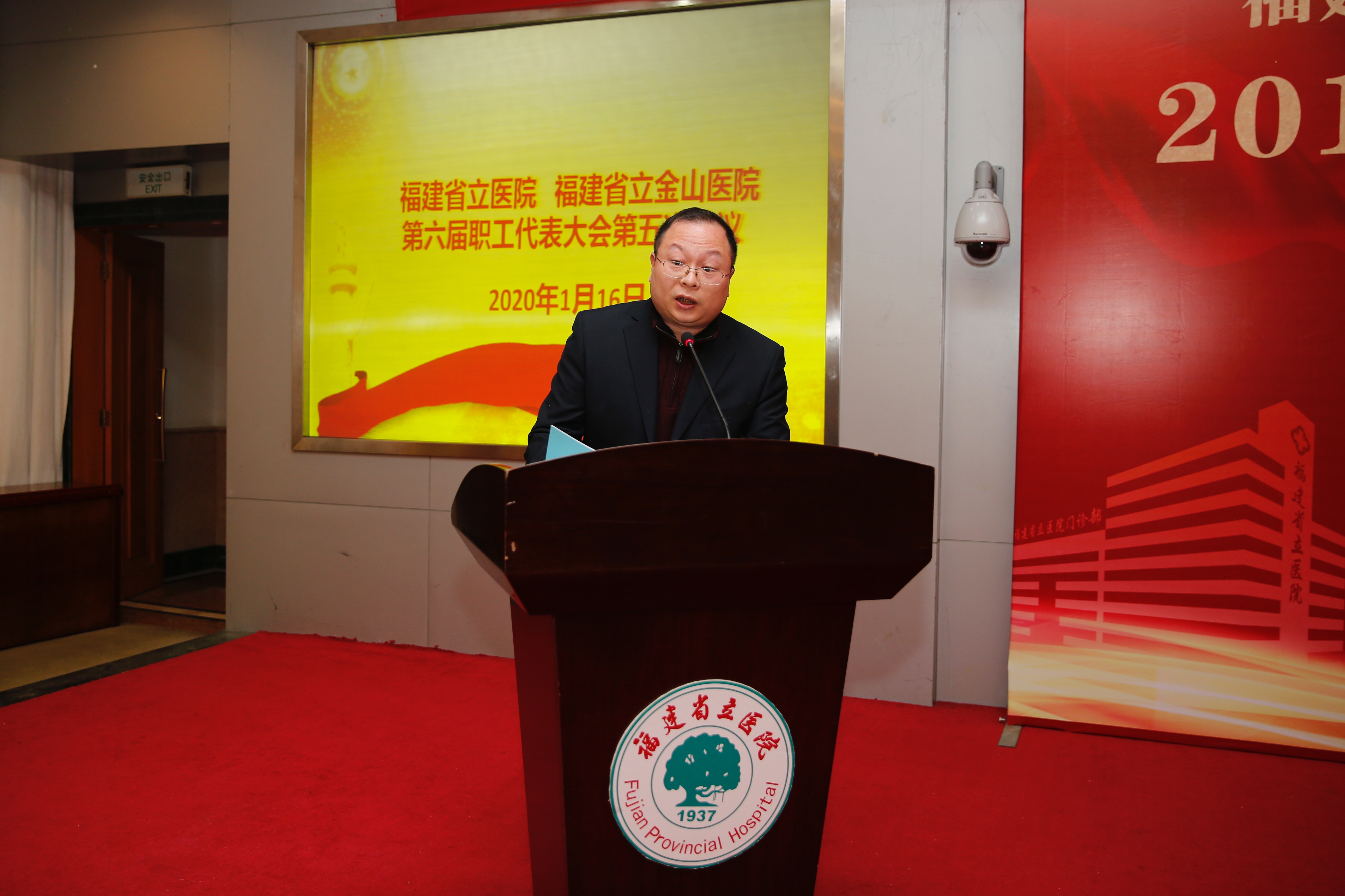 1月16日,福建省立医院、省立金山医院第六届职工代表大会第五次会议在国际学术厅举行。会议由院工会副主席张志强同志主持,共有177名代表参加了会议。党委书记、院长朱鹏立同志在会上作2019年工作报告,并提出在新的一年,要坚持医疗、教学、科研齐头并进,努力加速医院高质量全面发展。