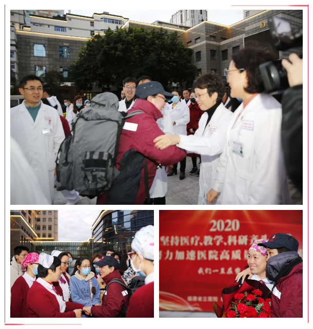 党委书记、院长朱鹏立代表医院党政领导班子、代表医院5000余名员工向队员授旗,感谢医疗队在万家团圆的日子里代表省立人奔赴一线。生命重于泰山,队员们身上体现了医务人员敬佑生命、大爱无疆的奉献精神,体现了省立人关键时刻勇挑重担的高贵品质。希望队员们团结战斗,不负使命,圆满平安地完成任务。感谢队员家属舍小家为大家,解除队员后顾之忧。“省立医院和家人们是你们的坚强后盾,请你们照顾好自己,照顾好队友,盼望大家平安归来!”