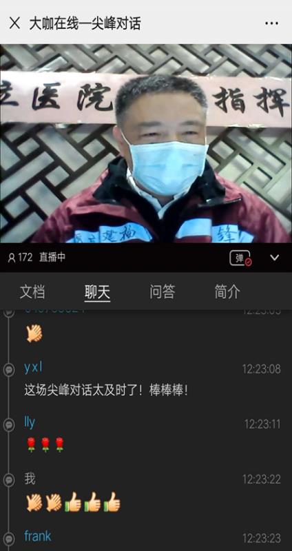 直播中,陈锋教授主要介绍了福建省立医院138人整建制援鄂医疗队入汉后在抗疫一线的基本情况,以及新冠肺炎疫情的进展,并与其他大咖共同探讨了在抗击疫情过程中的重点难点问题。