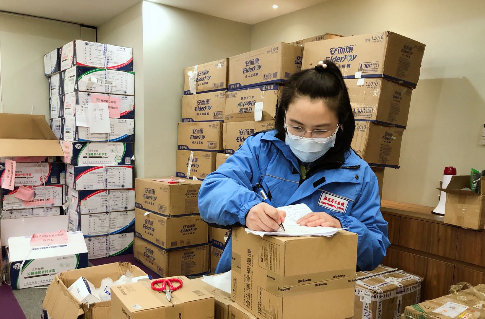 从接到指令到出发仅仅3小时,随机到达的还有满载着省委省政府深切关爱的243箱物资,刚下飞机王琳就开启了“战斗”模式,她逐箱清点,生怕漏掉一件物资。