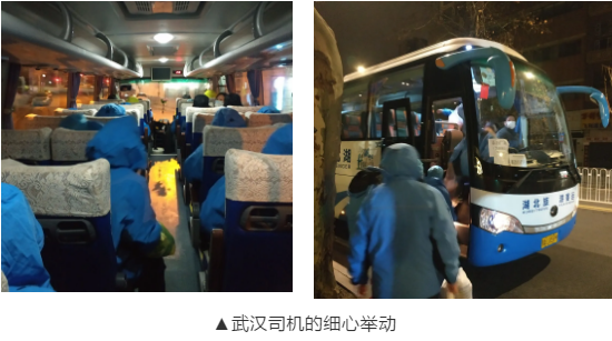 在武汉的医疗队员们说:我们只是换了个上班的地方,对我们而言,与众不同的是,这条往返于驻地和医院的上班之路。因为,无论刮风下雨、白天黑夜,总有武汉的公交车、志愿者司机们在默默守候,暖心的驾车接送,我们是共同抗击疫情的战友,大家风雨同路,是相亲相爱的一家人。