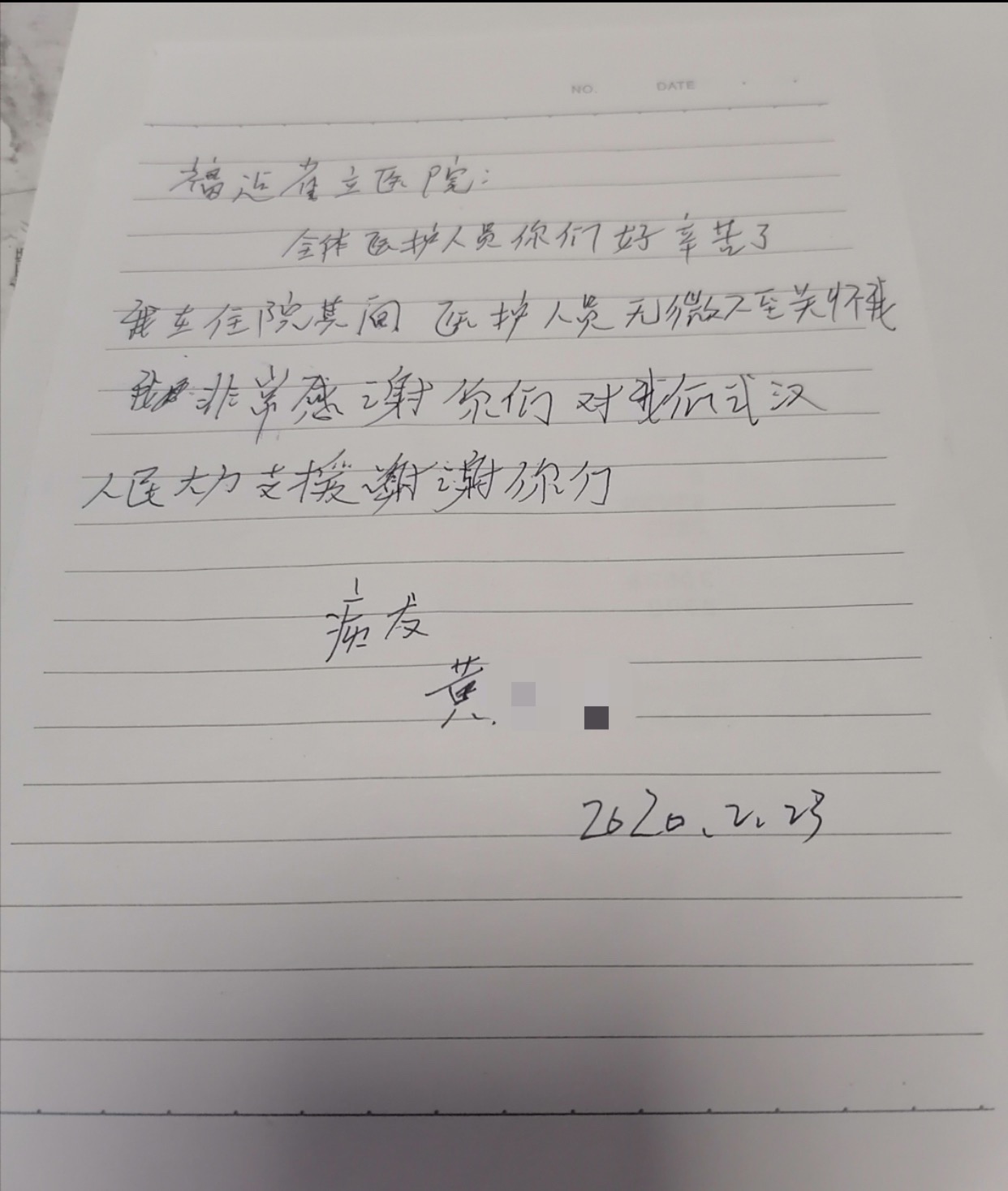福建省立医院医疗队在武汉抗疫期间,不仅是医护人员感动着患者,很多患者的一言一行也感动着队员们。