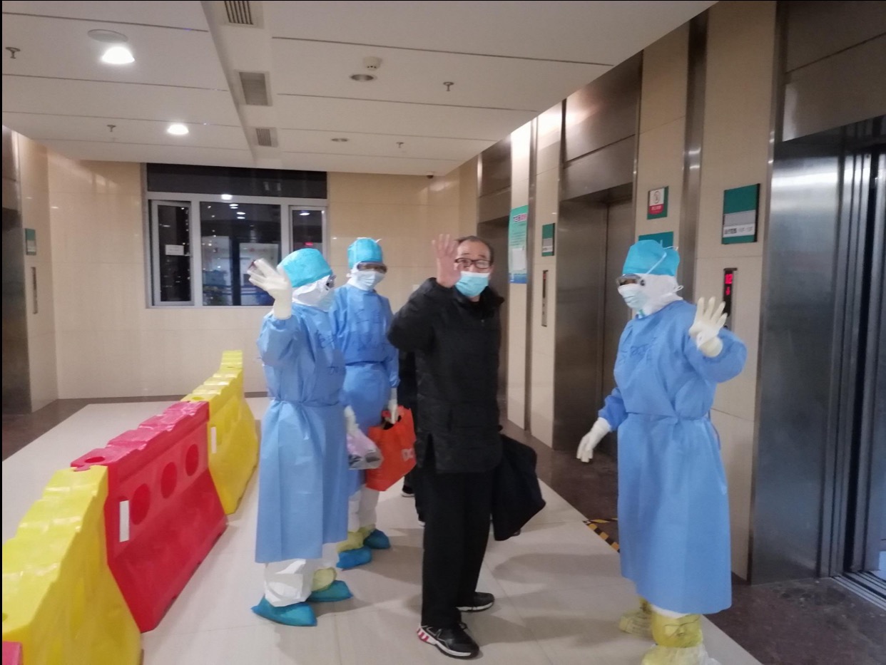 ▲出院患者与医护人员挥手道别