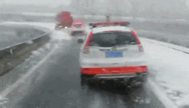 ▲驾驶员冒雪送物资