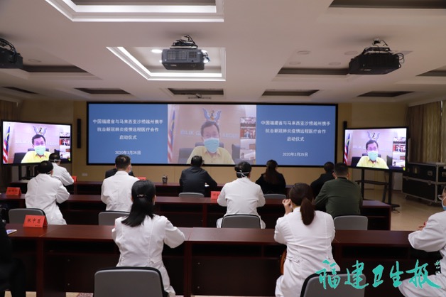 3月25日下午,我省与马来西亚沙捞越州携手抗击新冠肺炎疫情远程医疗合作在我院启动。在落户我院的福建省新冠肺炎防治远程指导中心,来自我省新冠肺炎医疗救治临床专家组的10位专家们与沙捞越州的15位医疗专家们“隔空”对话,就新冠肺炎症状如何及早发现、民众如何防护、临床医疗救治、重症危重症病例管理等问题进行交流。