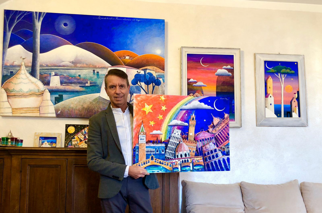 ▲意大利画家赠送了专门为中国专家组绘制的画作