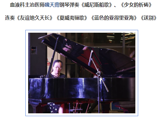 表演当晚,还有其他几位来自两院区的风湿科、儿科、急诊科、放射科、科研处、教学办等的“音乐大咖”也为大家演绎了精彩的曲目。一起和小编来欣赏一下医护队伍里的“演奏家”的精彩视频吧~