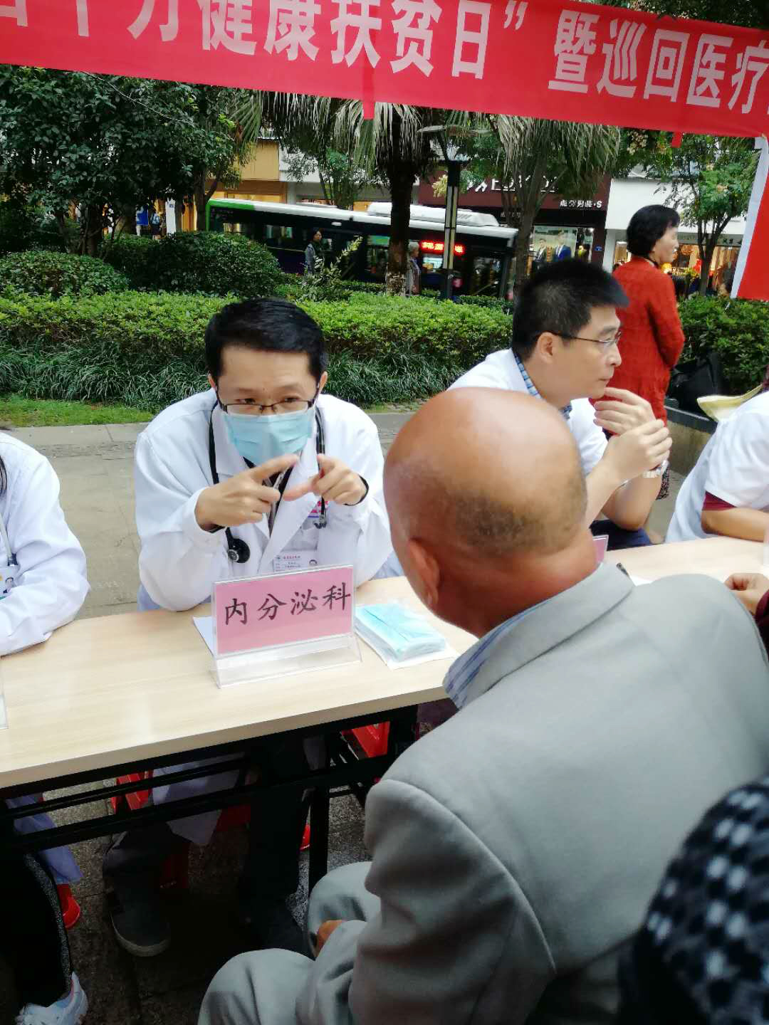 10月17日是我国第5个扶贫日,也是第26个国际消除贫困日。省卫计委联合福州市鼓楼区东街街道旗汛口社区,在省少年儿童图书馆广场开展2018年“百千万健康扶贫日”主题活动暨在职党员到社区报到为群众服务活动,面向社区和困难群众开展精准健康扶贫活动。鼓楼区副区长高翔,我院17个党支部21名党员参加活动。