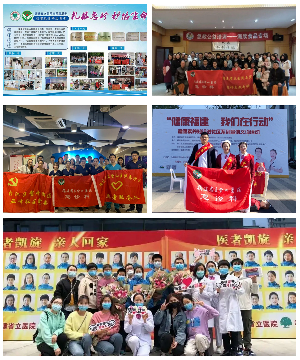 福建省立金山医院急诊科是一支年轻、富有战斗力和凝聚力的团队,现有医护人员62名,其中高级职称4人,中级职称16人,竭力为患者提供高质量的医疗技术服务。在近年的大型会议、赛事、突发公共卫生事件等医疗保障和医疗救治中提供有力保障,成长为“政治素质好、职业道德好、服务形式好、工作作风好、岗位业绩好”的集体。