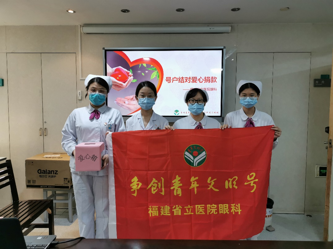 眼科医护人员由党、团支部书记饶惠英、刘灵颖带队,慰问省红十字会资助的困难老人,为困难户送上爱心基金4500元及生活慰问品。