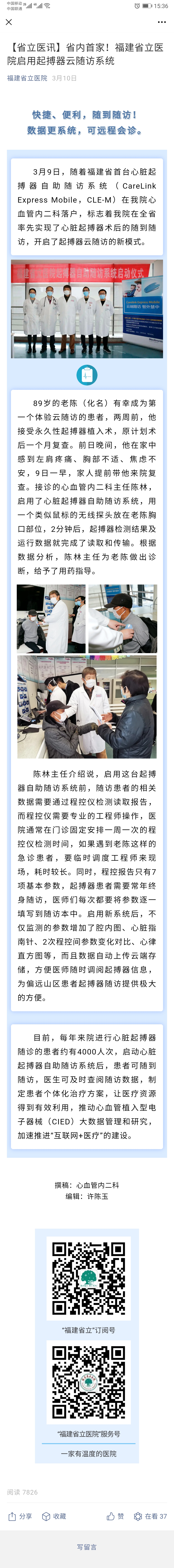 【省立医讯】省内首家!福建省立医院启用起搏器云随访系统