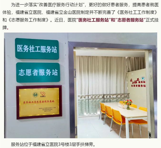 【改善医疗服务】汇聚你我爱心,让医疗服务更有温度——福建省立医院、省立金山医院医务社工服务站和志愿者服务站挂牌