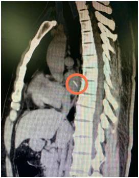 胸部CT片  画圈处为鱼刺
