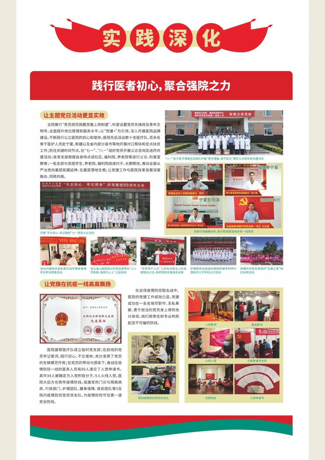 坚持党建引领,以党建带动文明创建、以文明创建促进党建,不断推动党建与医院文化、管理、业务的深度融合,充分诠释“一个支部就是一座堡垒,一名书记就是一个榜样,一名党员就是一面旗帜”。全面加强党建工作,犹如点燃“红色引擎”推动医院高质量发展。