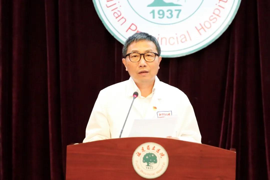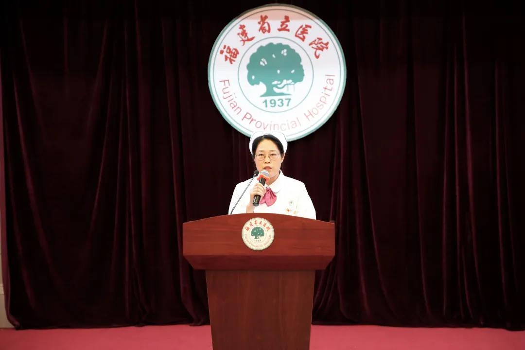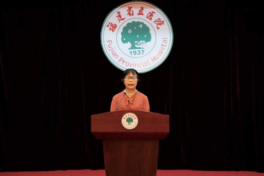 ▲副院长陈锋宣读《福建省立医院、省立金山医院关于从事护理工作30年护士的表彰决定》