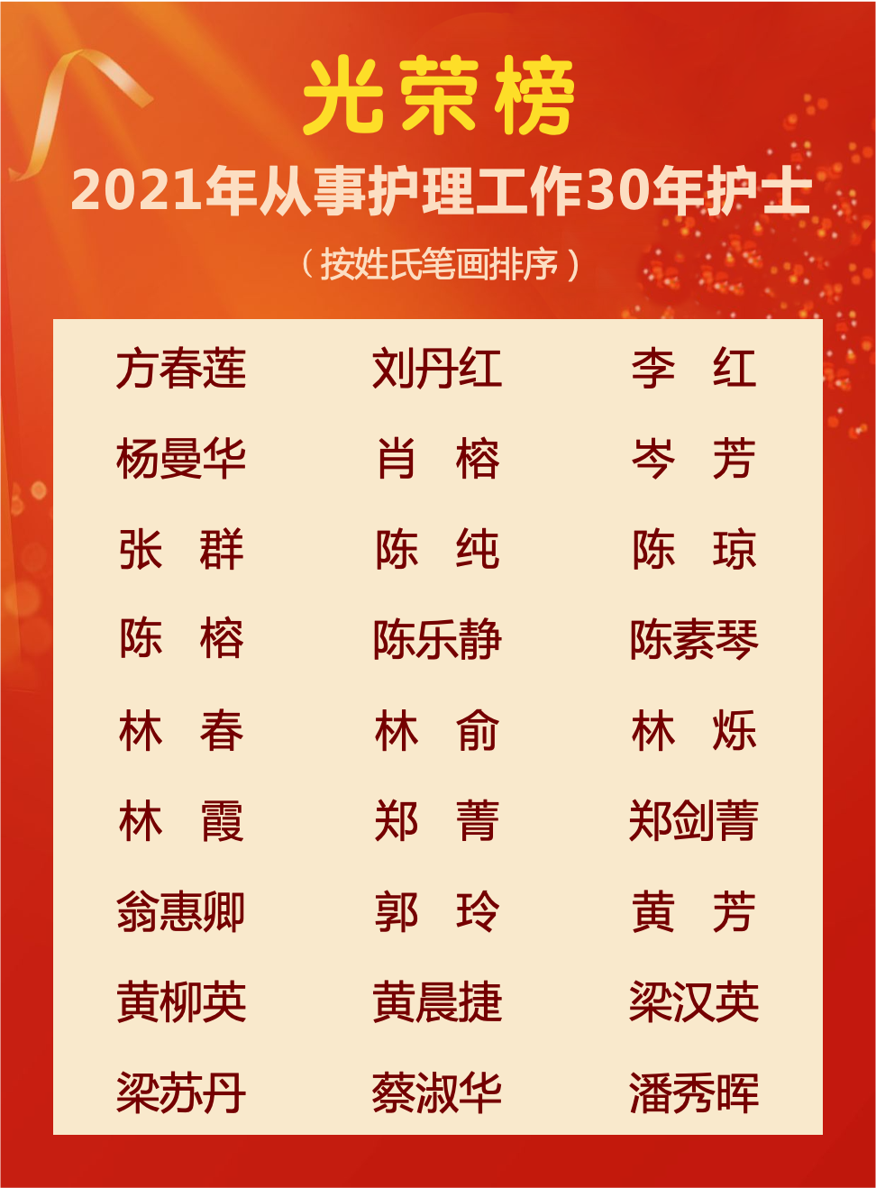 ▲表彰从事护理工作30年护士