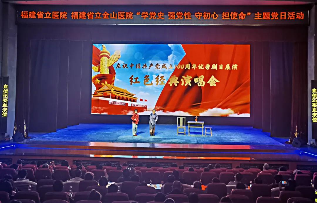 ▲医院党委组织开展主题党日活动,观看福建省庆祝中国共产党成立100周年优秀剧目展演《红色经典演唱会》