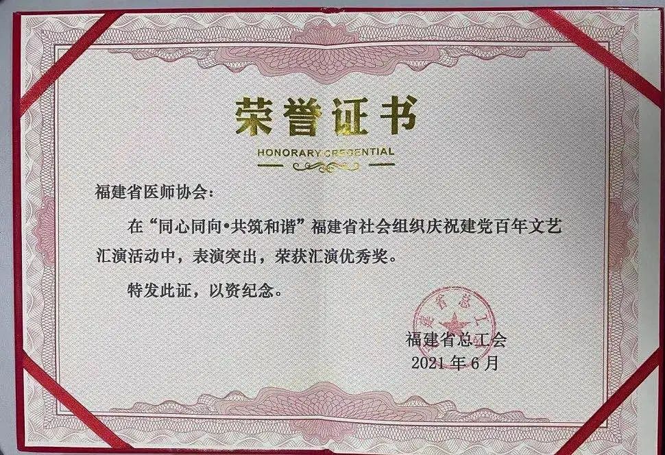 为庆祝党的百年华诞,福建省总工会举办社会组织建党百年文艺汇演活动。6月22日,我院女专家合唱团代表福建省医师协会,在福建会堂参加“同心同向·共筑和谐”福建省社会组织庆祝建党百年文艺汇演。