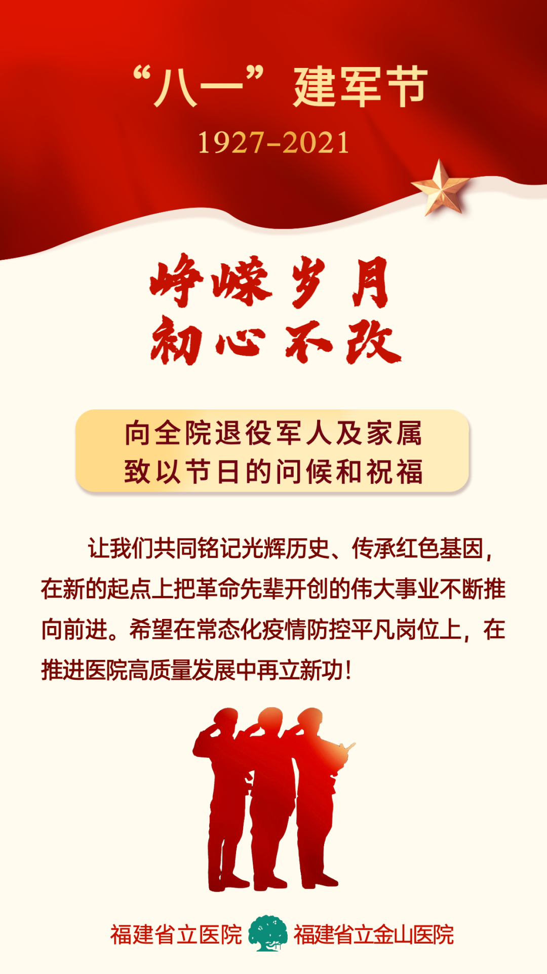 峥嵘岁月,初心不改——福建省立医院、省立金山医院向全院退役军人及家属致以节日的问候和祝福!