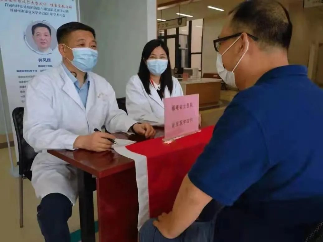 我院重症医学四科、康复科、呼吸与危重医学科、肿瘤内科、消化内科、内分泌科等党支部联合省内多家医院专家组成健康使团,赴琅岐福州市第一医院(东院)开展大型义诊活动。专家们从专科常见病、多见病出发,举办了12 场健康宣教专题讲座,会场座无虚席。在健康咨询区,我院内分泌科林丽香教授、庄维特教授,消化内科郑铭教授等十余位专家坐诊,为患者解答疑难杂症问题。年近七旬尹大爷在医务人员的悉心诊疗指导后对义诊活动赞不绝口:“这样的义诊对我这样行动不方便、年纪又大的老人来说,真的太有帮助了!”